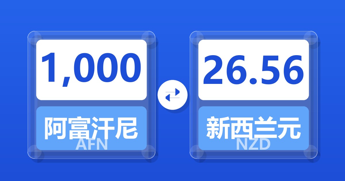 1,000 阿富汗尼 (AFN) = 26.42 新西兰元 (NZD)