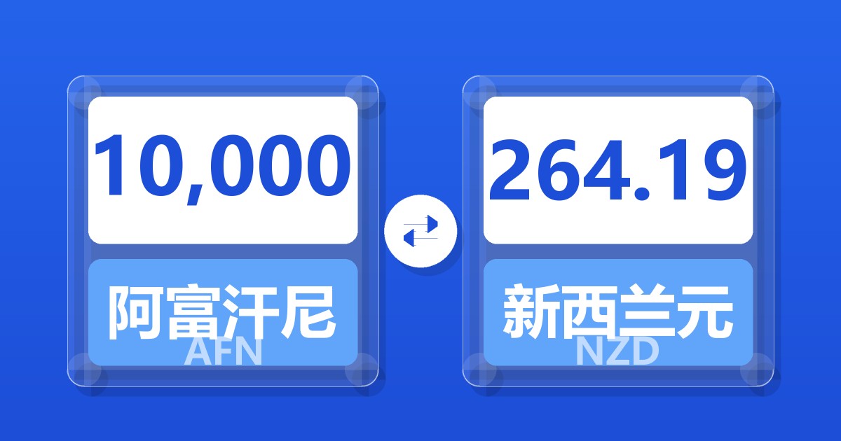 10,000 阿富汗尼 (AFN) = 264.19 新西兰元 (NZD)