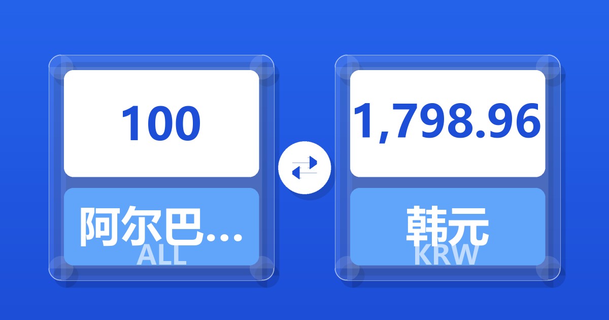 100 阿尔巴尼亚列克 (ALL) = 1,797.01 韩元 (KRW)