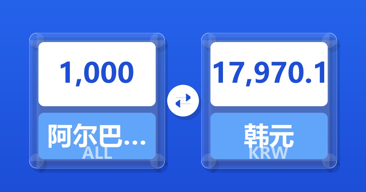 1,000 阿尔巴尼亚列克 (ALL) = 17,970.10 韩元 (KRW)