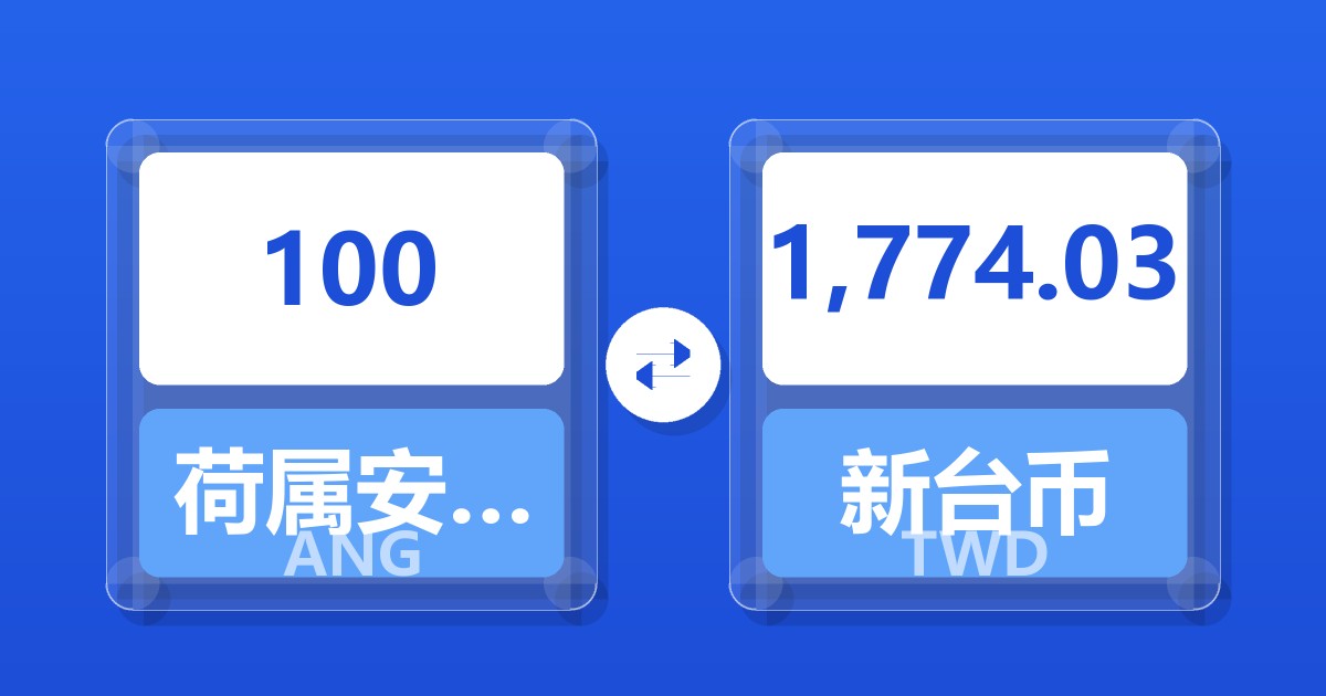 100 荷属安的列斯盾 (ANG) = 1,774.03 新台币 (TWD)