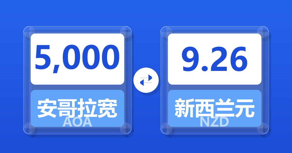 5,000 安哥拉宽扎 (AOA) = 9.30 新西兰元 (NZD)