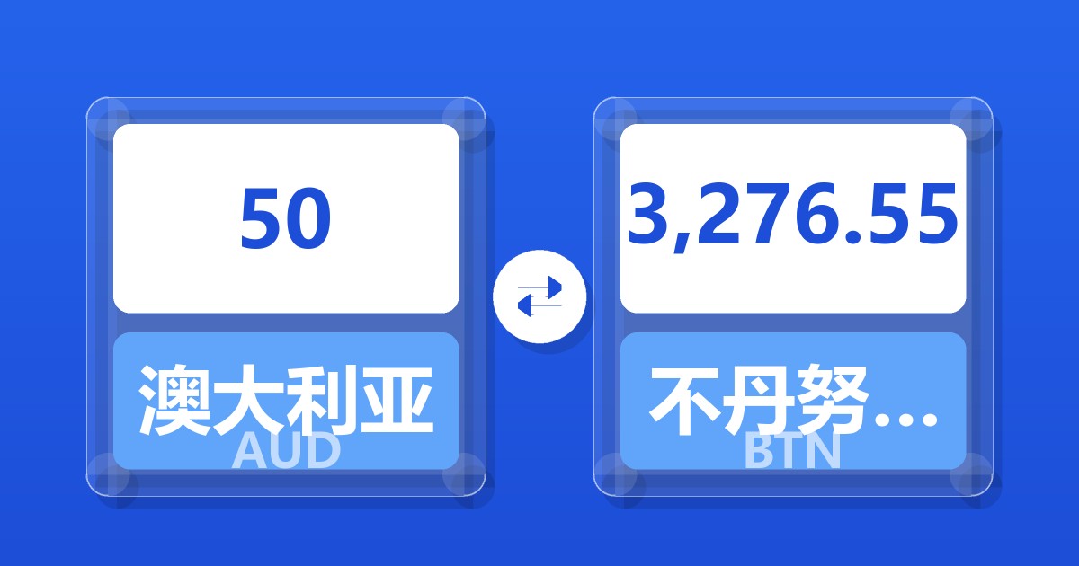 50 澳大利亚元 (AUD) = 3,261.04 不丹努尔特鲁姆 (BTN)