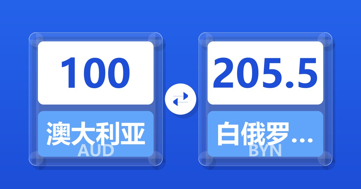 100 澳大利亚元 (AUD) = 205.50 白俄罗斯卢布 (BYN)