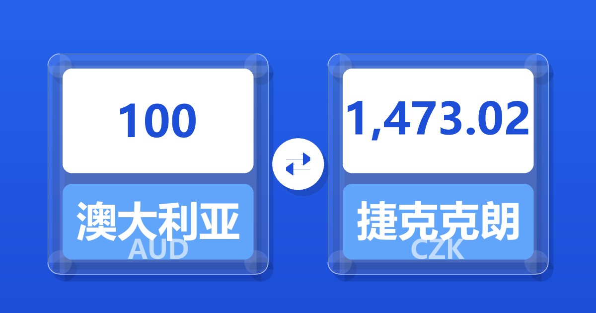 100 澳大利亚元 (AUD) = 1,472.07 捷克克朗 (CZK)