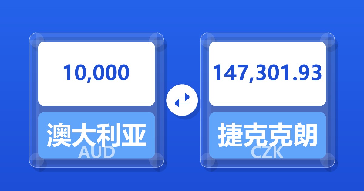 10,000 澳大利亚元 (AUD) = 147,207.27 捷克克朗 (CZK)