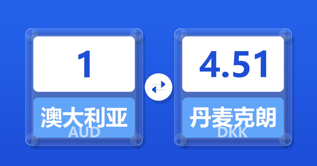 1 澳大利亚元 (AUD) = 4.50 丹麦克朗 (DKK)