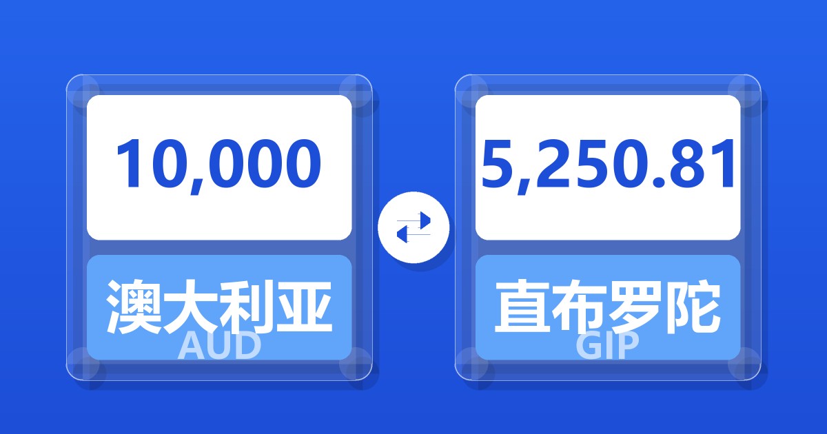 10,000 澳大利亚元 (AUD) = 5,250.81 直布罗陀镑 (GIP)