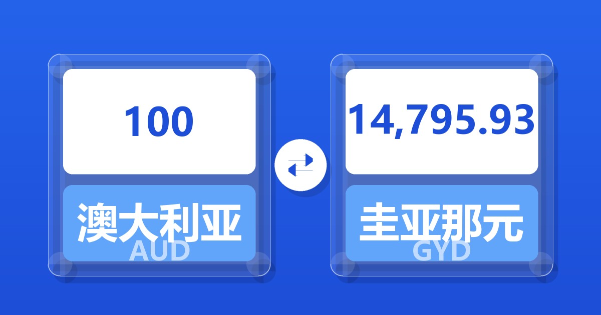 100 澳大利亚元 (AUD) = 14,774.10 圭亚那元 (GYD)