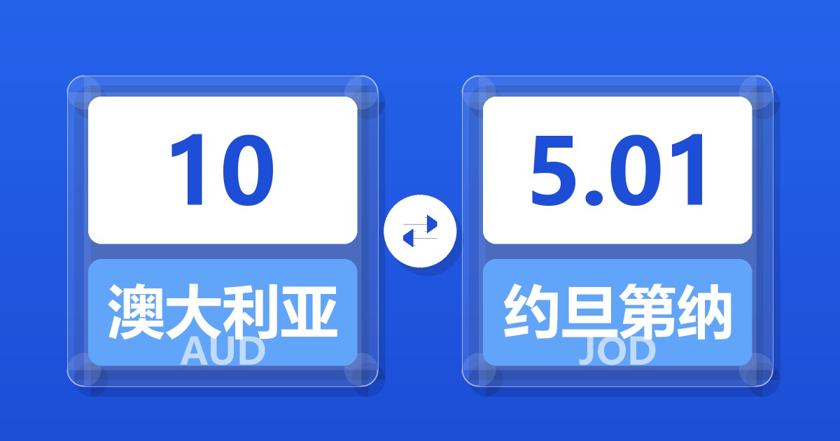 10 澳大利亚元 (AUD) = 5.00 约旦第纳尔 (JOD)