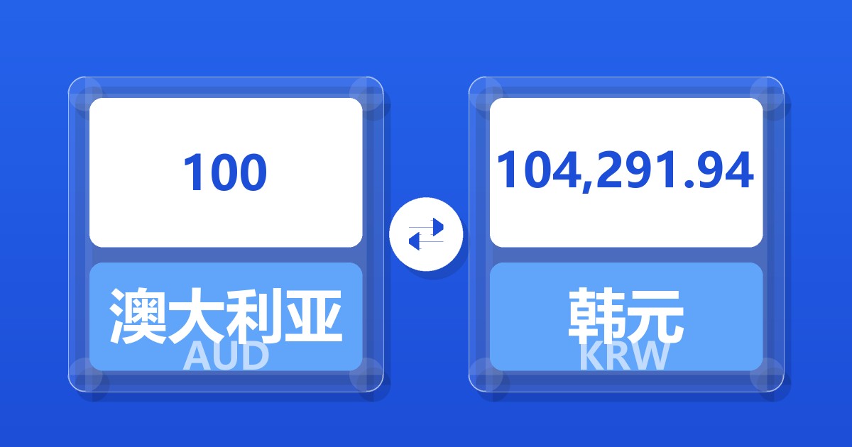 100 澳大利亚元 (AUD) = 104,131.99 韩元 (KRW)