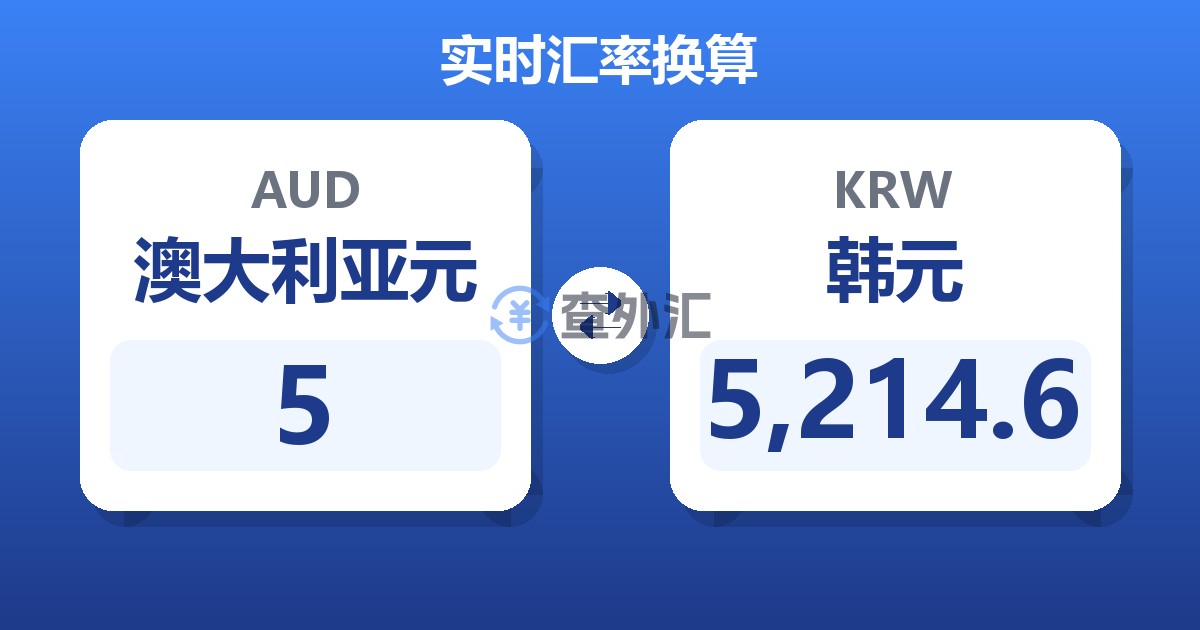 5 澳大利亚元 (AUD) = 5,206.60 韩元 (KRW)
