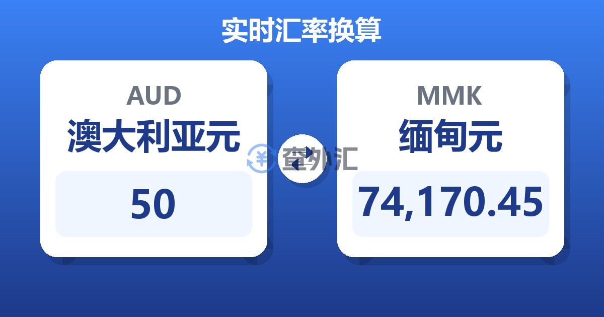 50 澳大利亚元 (AUD) = 74,017.54 缅甸元 (MMK)
