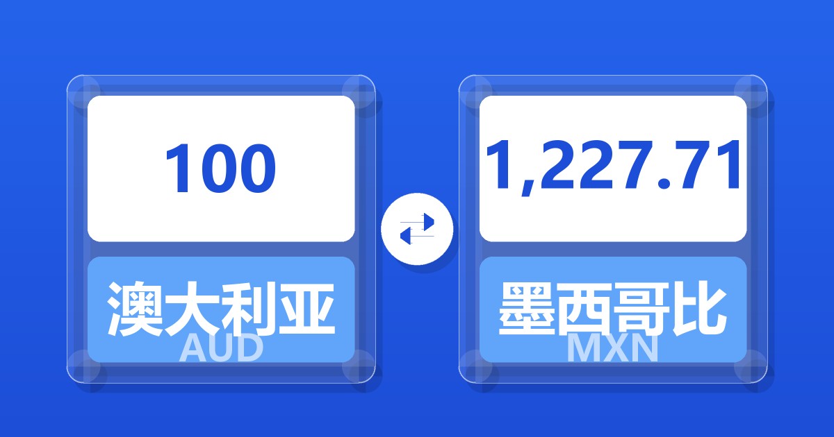 100 澳大利亚元 (AUD) = 1,228.36 墨西哥比索 (MXN)