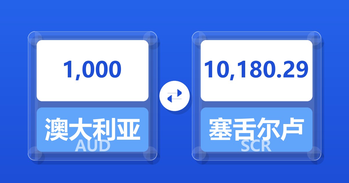 1,000 澳大利亚元 (AUD) = 10,180.29 塞舌尔卢比 (SCR)