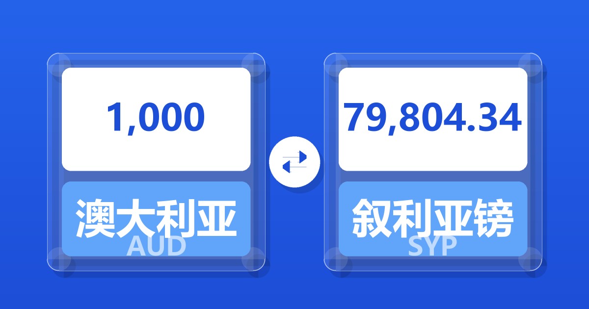 1,000 澳大利亚元 (AUD) = 80,023.39 叙利亚镑 (SYP)