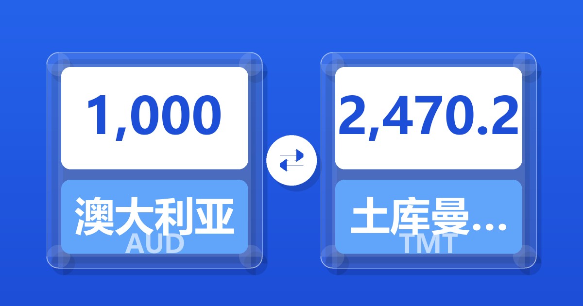 1,000 澳大利亚元 (AUD) = 2,470.20 土库曼斯坦马纳特 (TMT)