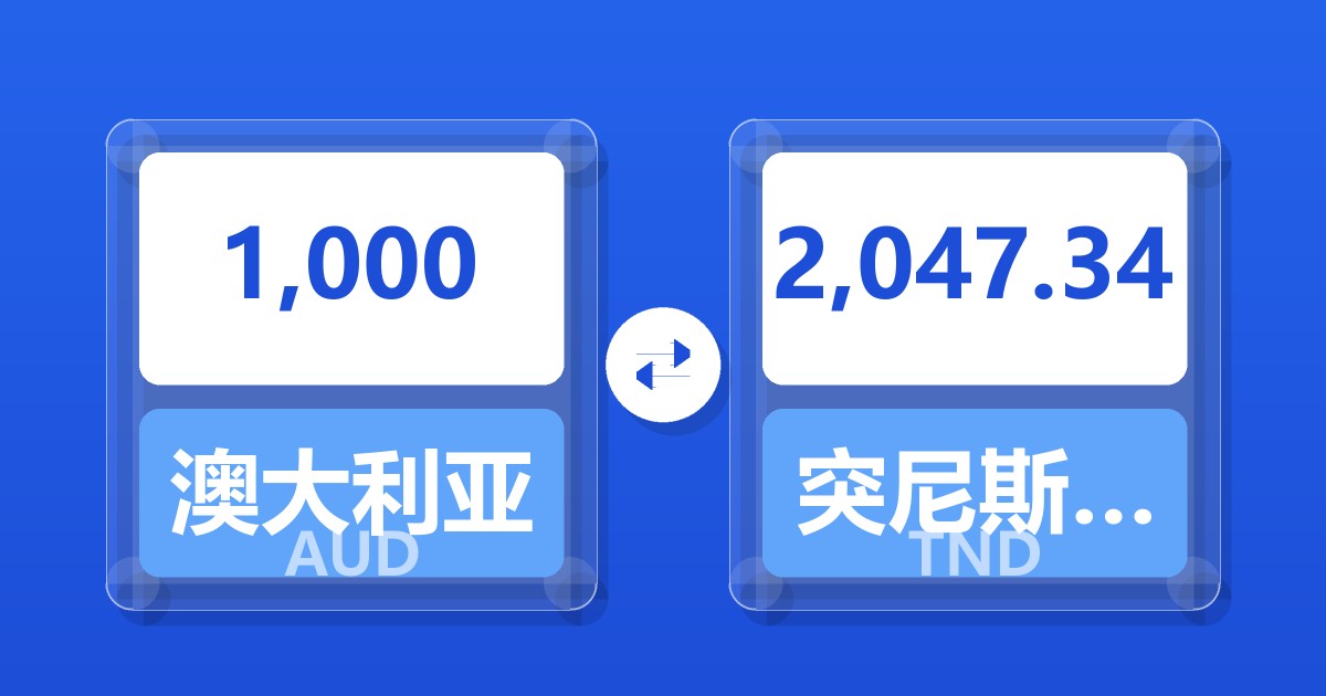 1,000 澳大利亚元 (AUD) = 2,047.34 突尼斯第纳尔 (TND)