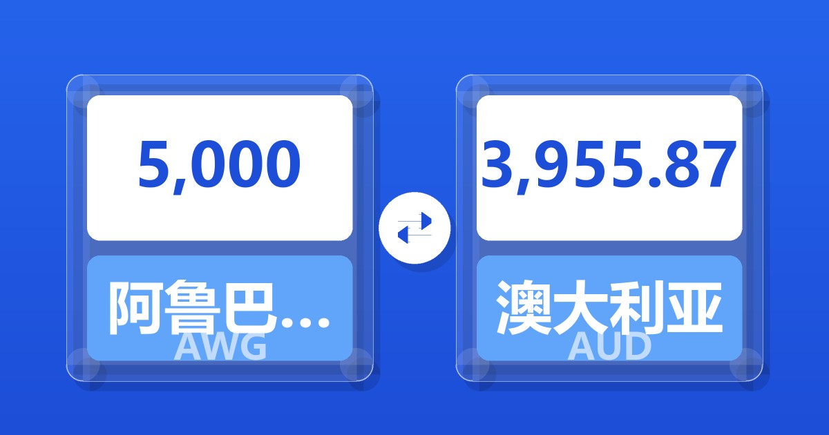 5,000 阿鲁巴弗罗林 (AWG) = 3,964.80 澳大利亚元 (AUD)