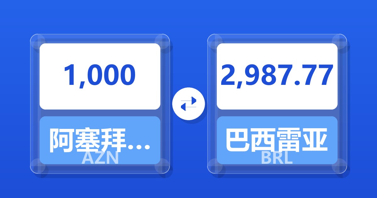 1,000 阿塞拜疆马纳特 (AZN) = 3,000.29 巴西雷亚尔 (BRL)