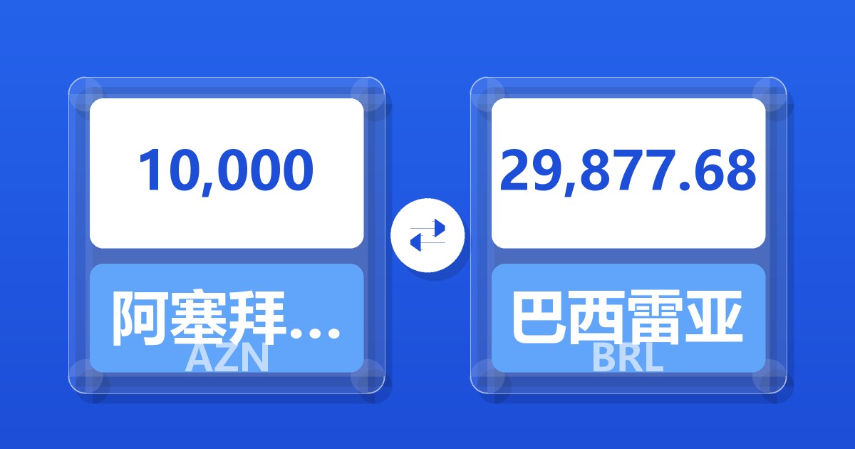 10,000 阿塞拜疆马纳特 (AZN) = 30,002.94 巴西雷亚尔 (BRL)