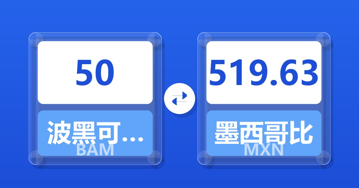50 波黑可兑换马克 (BAM) = 520.49 墨西哥比索 (MXN)
