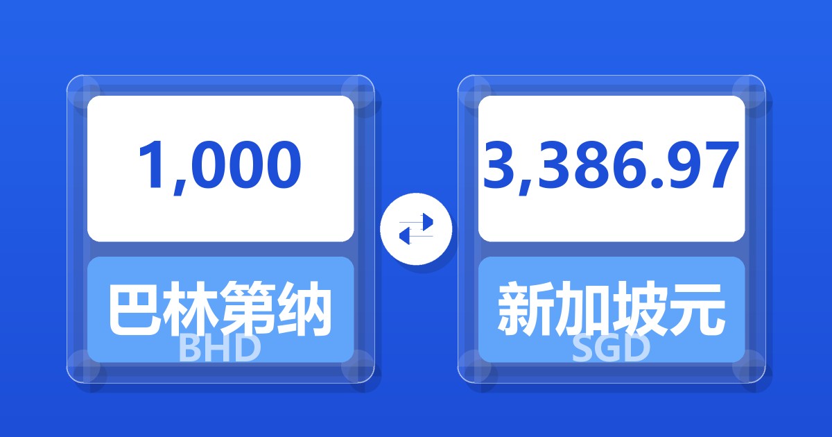 1,000 巴林第纳尔 (BHD) = 3,388.56 新加坡元 (SGD)