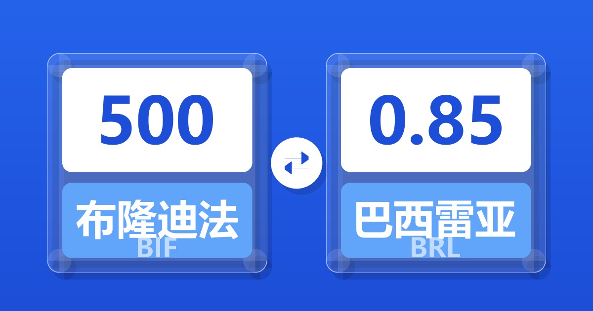 500 布隆迪法郎 (BIF) = 0.86 巴西雷亚尔 (BRL)