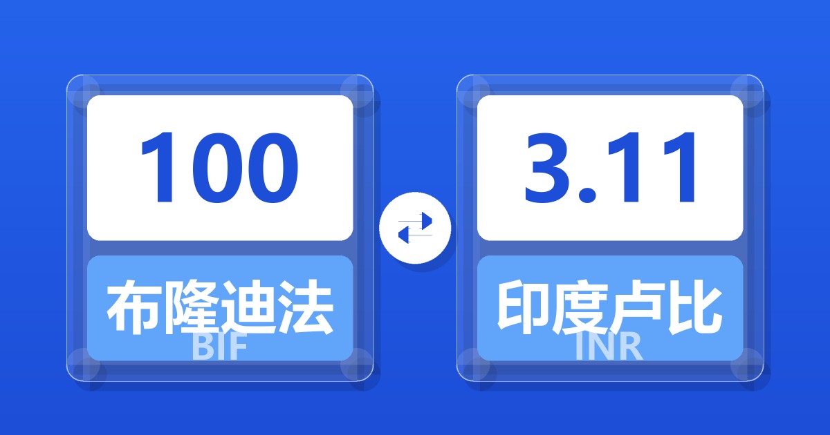 100 布隆迪法郎 (BIF) = 3.10 印度卢比 (INR)