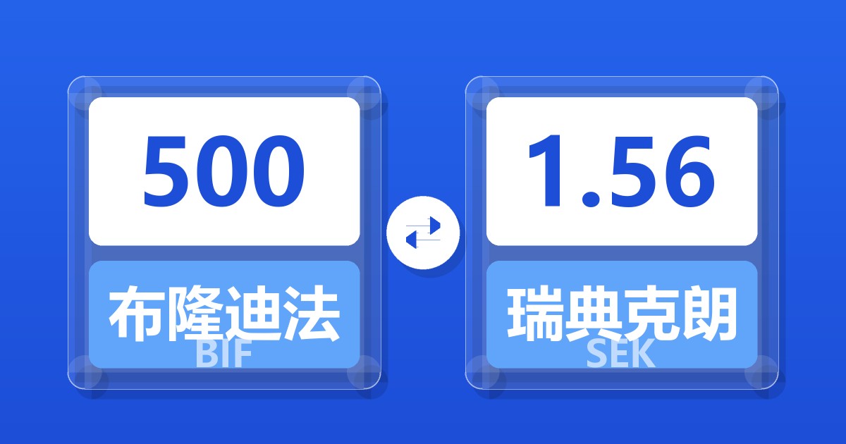 500 布隆迪法郎 (BIF) = 1.56 瑞典克朗 (SEK)