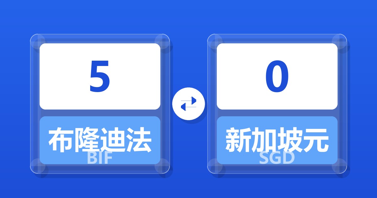5 布隆迪法郎 (BIF) = 0.00 新加坡元 (SGD)