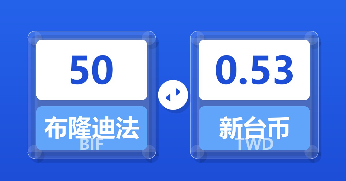 50 布隆迪法郎 (BIF) = 0.53 新台币 (TWD)