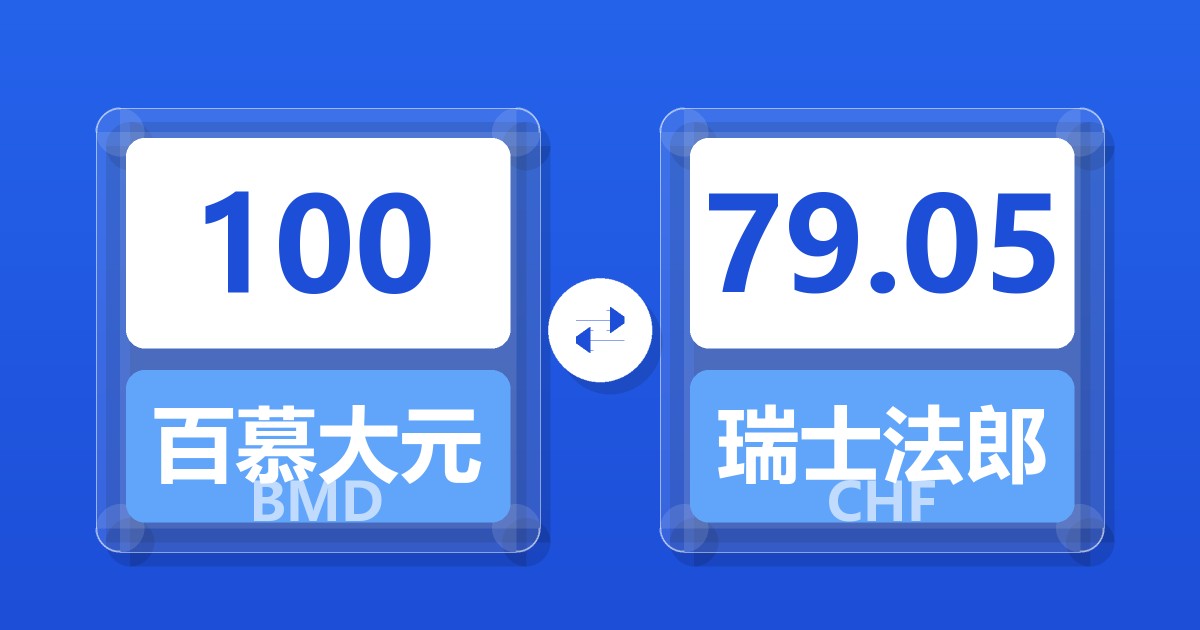 100 百慕大元 (BMD) = 79.05 瑞士法郎 (CHF)