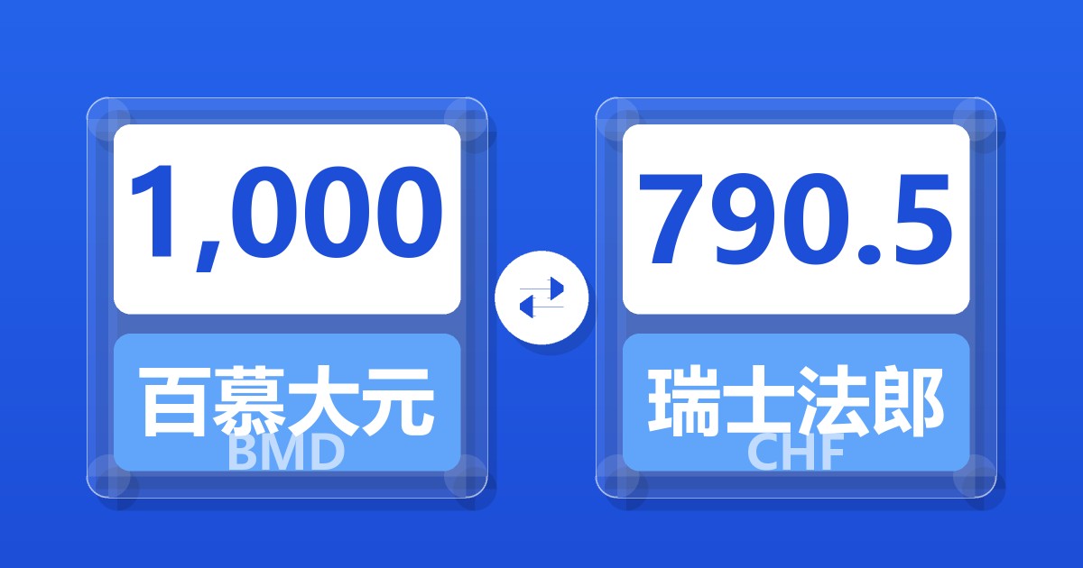 1,000 百慕大元 (BMD) = 790.50 瑞士法郎 (CHF)