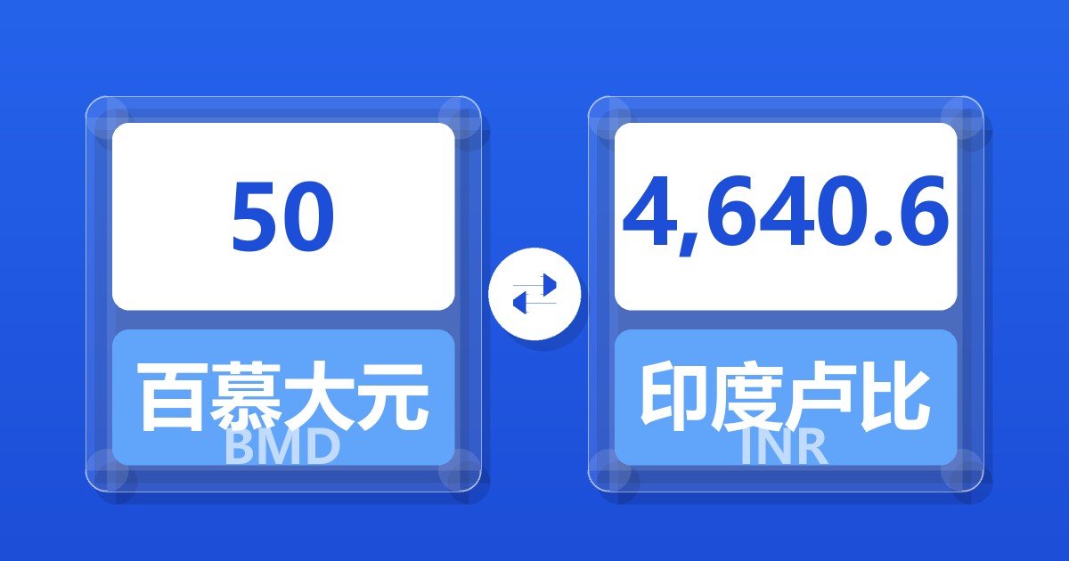 50 百慕大元 (BMD) = 4,628.73 印度卢比 (INR)
