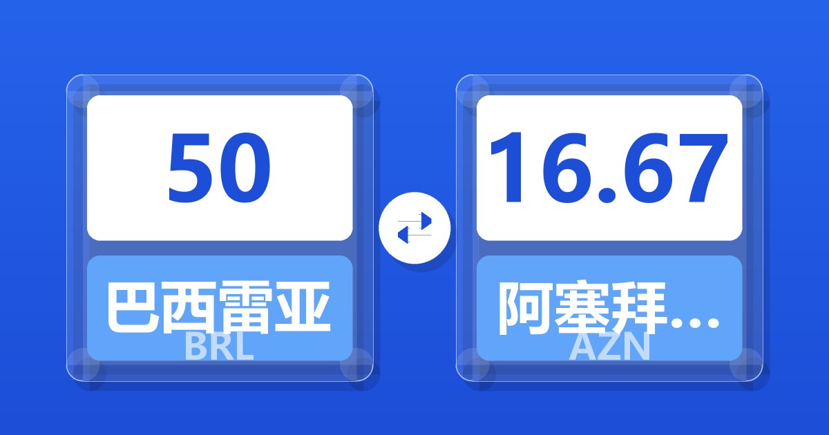 50 巴西雷亚尔 (BRL) = 16.67 阿塞拜疆马纳特 (AZN)