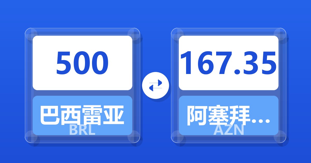500 巴西雷亚尔 (BRL) = 166.65 阿塞拜疆马纳特 (AZN)