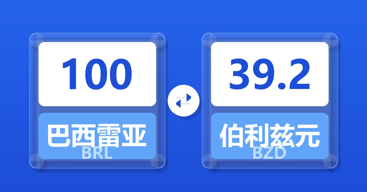 100 巴西雷亚尔 (BRL) = 39.20 伯利兹元 (BZD)