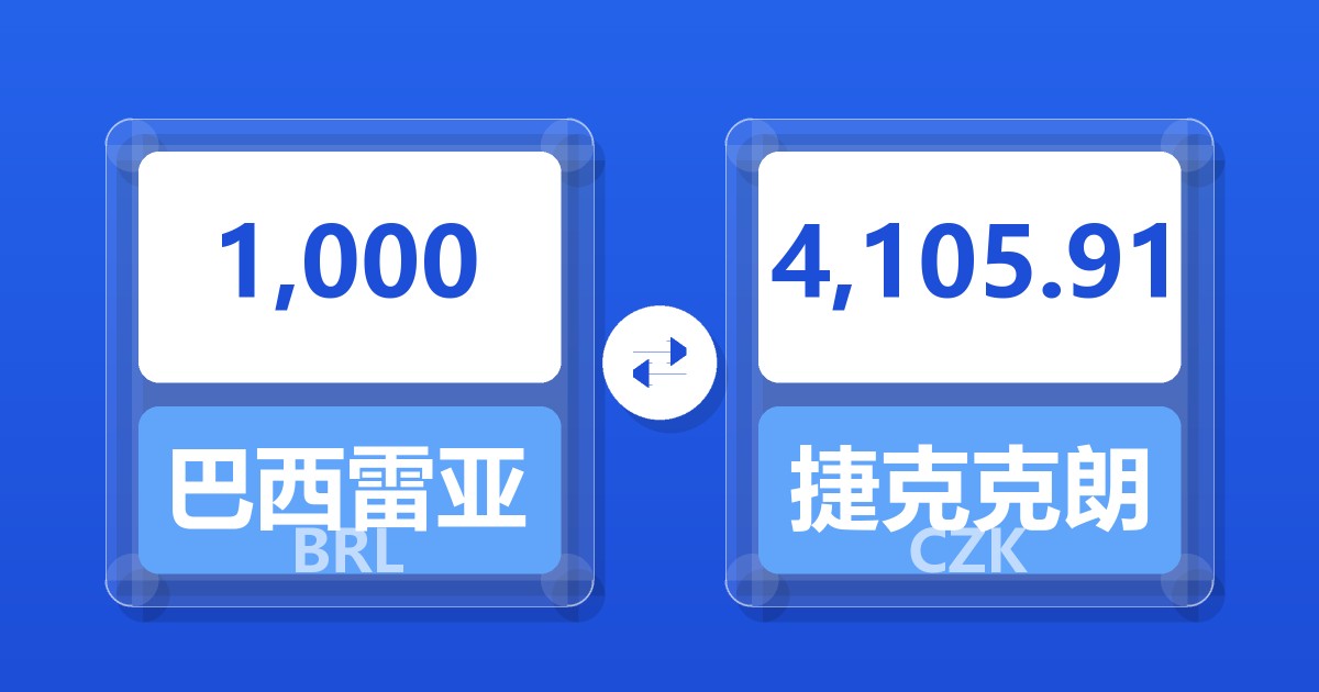 1,000 巴西雷亚尔 (BRL) = 4,094.89 捷克克朗 (CZK)