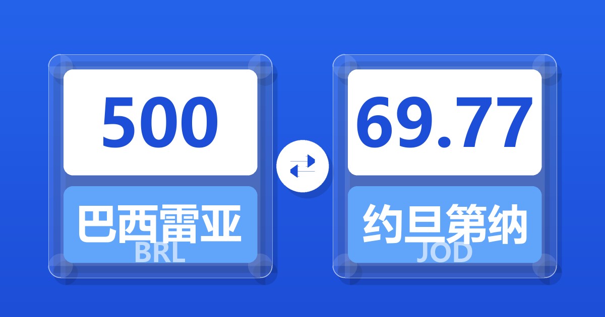 500 巴西雷亚尔 (BRL) = 69.47 约旦第纳尔 (JOD)