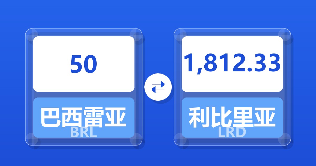 50 巴西雷亚尔 (BRL) = 1,806.32 利比里亚元 (LRD)