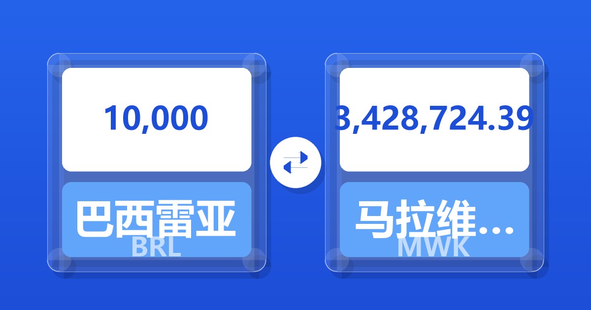 10,000 巴西雷亚尔 (BRL) = 3,413,102.73 马拉维克瓦查 (MWK)