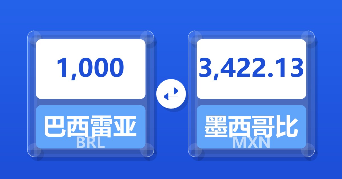 1,000 巴西雷亚尔 (BRL) = 3,416.94 墨西哥比索 (MXN)