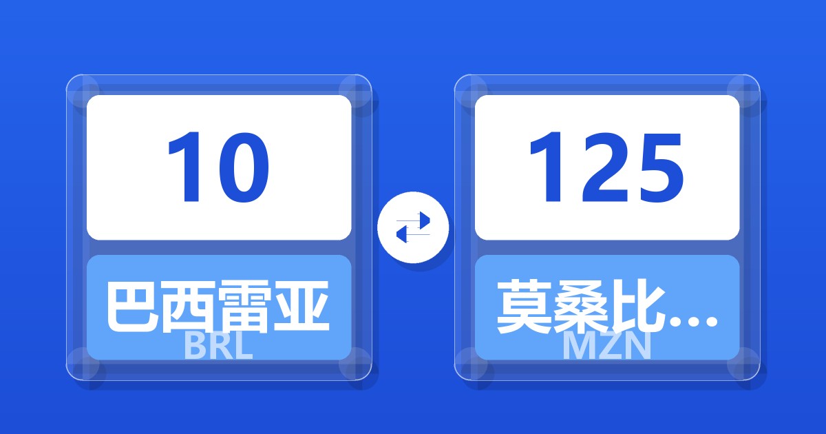 10 巴西雷亚尔 (BRL) = 125.00 莫桑比克梅蒂卡尔 (MZN)