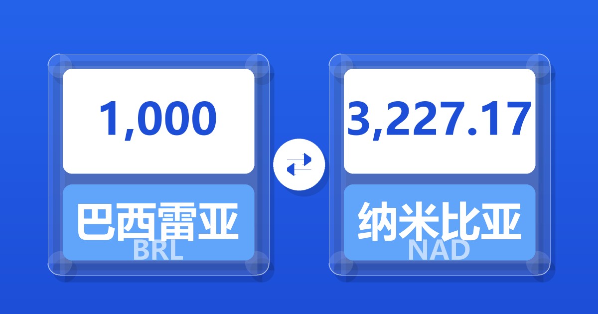 1,000 巴西雷亚尔 (BRL) = 3,213.60 纳米比亚元 (NAD)