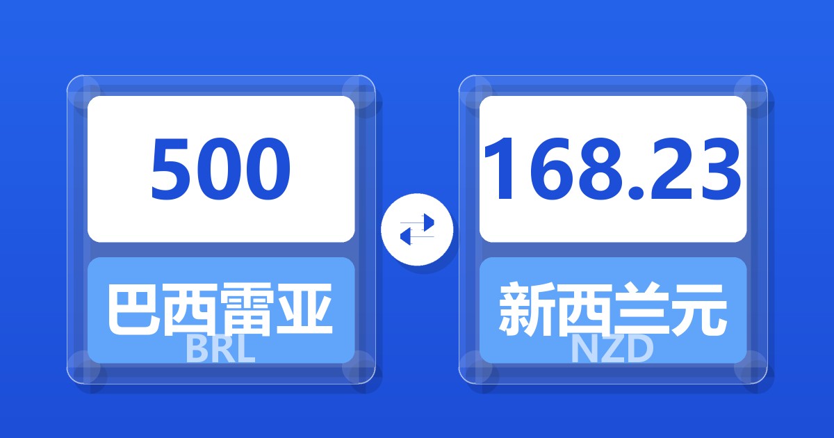 500 巴西雷亚尔 (BRL) = 168.17 新西兰元 (NZD)