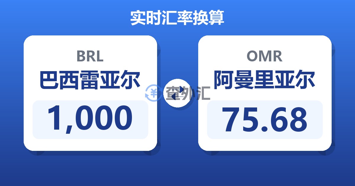 1,000 巴西雷亚尔 (BRL) = 75.35 阿曼里亚尔 (OMR)