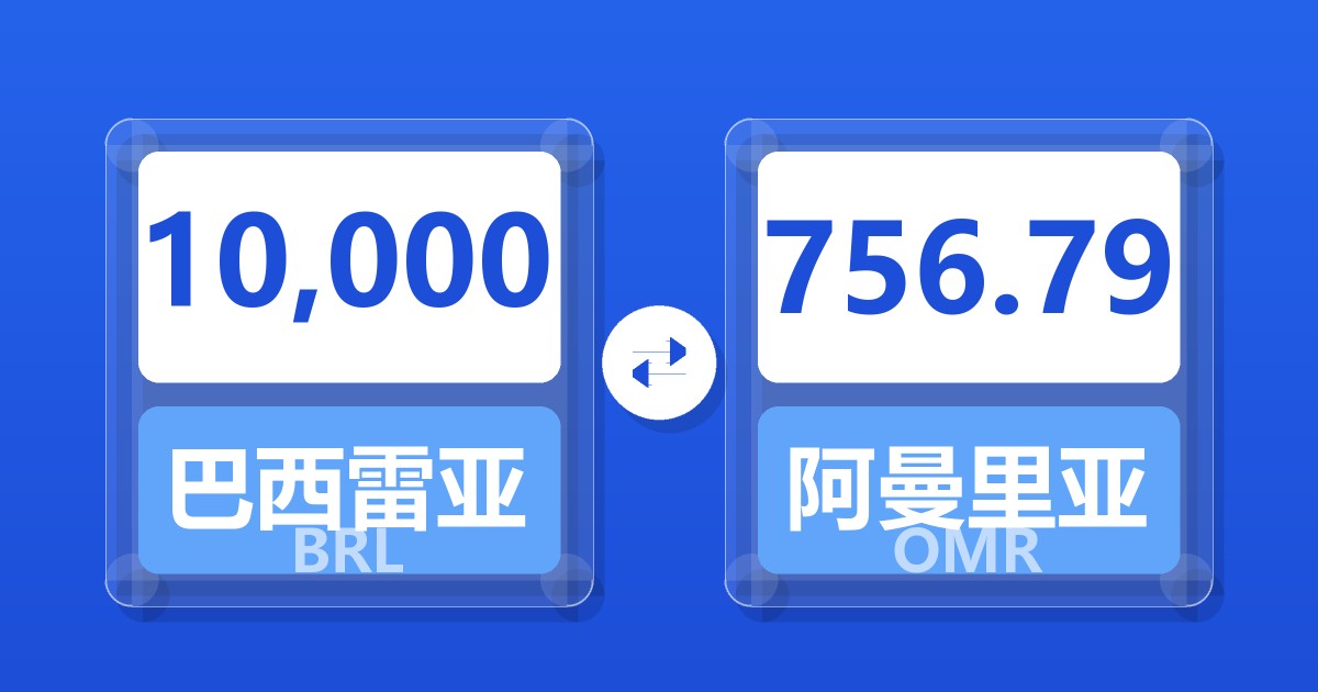 10,000 巴西雷亚尔 (BRL) = 753.54 阿曼里亚尔 (OMR)