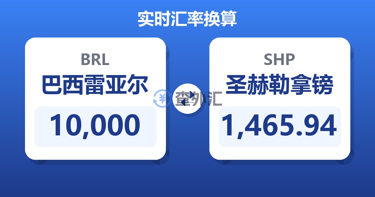 10,000 巴西雷亚尔 (BRL) = 1,460.63 圣赫勒拿镑 (SHP)