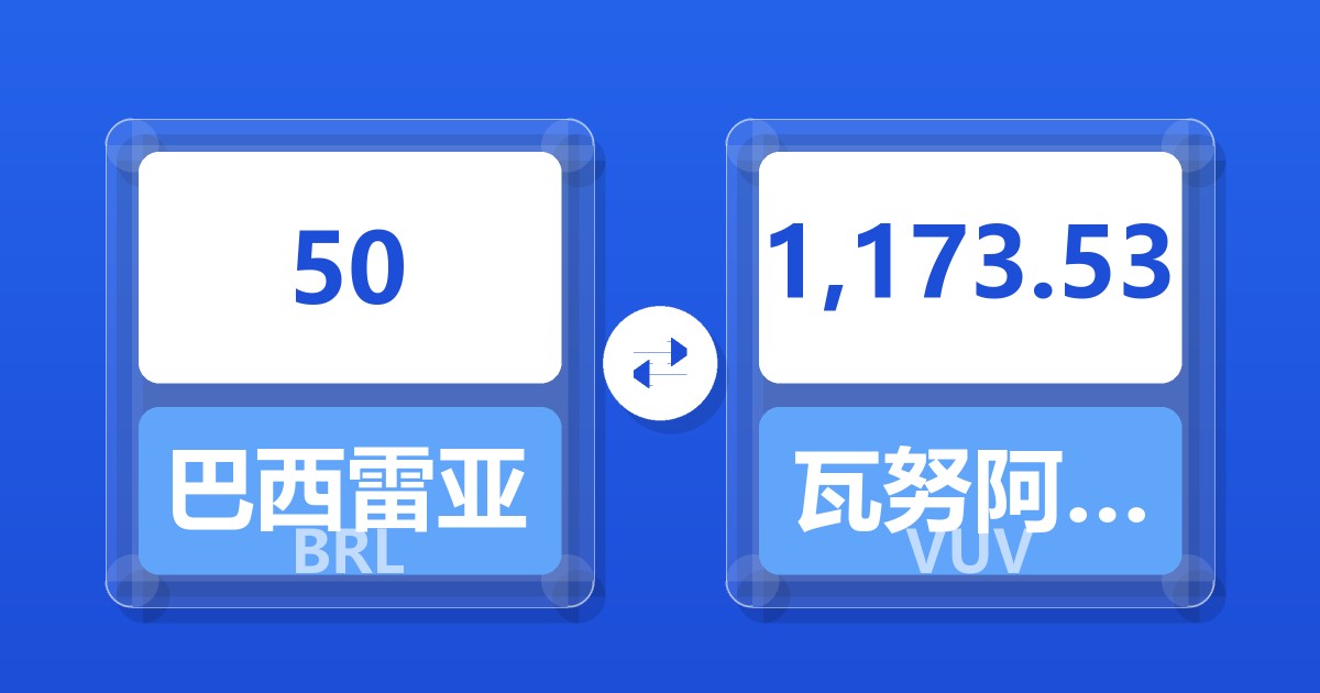 50 巴西雷亚尔 (BRL) = 1,177.32 瓦努阿图瓦图 (VUV)
